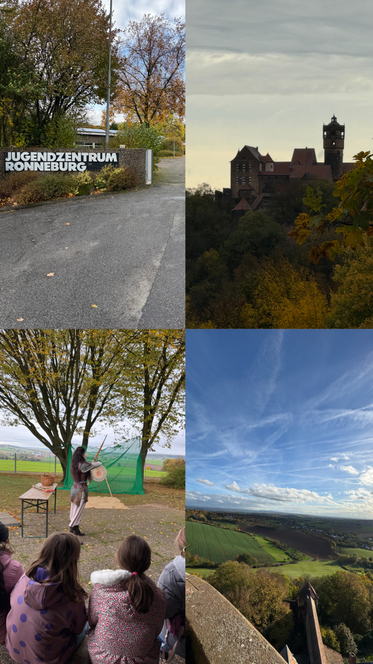 Vom 21.10. bis 24.10.2025 waren die Klassen 4a, 4b und 4c auf Klassenfahrt im Jugendzentrum Ronneburg. Dort erlebten sie eine spannende und erlebnisreiche Woche, die sie so schnell nicht vergessen werden. Gemeinsam mit Ritter Bernd gestalteten sie Kunstwerke aus Speckstein, durften sich im Bogenschießen ausprobieren und erlebten bei einer interessanten Burgbesichtigung das Mittelalter hautnah.
