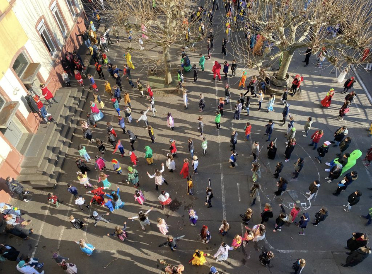 Am Faschingsdienstag lief über die Lautsprecheranlage Faschingsmusik auf dem Schulhof. Die tolle Polonaise und das Bewegungsspiel durften nicht fehlen! Viele Kinder und Lehrkräfte kamen verkleidet und in den Klassenräumen wurde gespielt und genascht. Die gesamte Schülerschaft hat mitgemacht und viel Spaß gehabt.